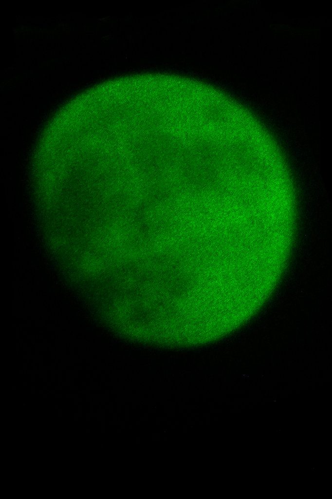 „In der Werkgruppe Überstrahlungen arbeitet Maria Jauregui Ponte ohne Kamera. Sie belichtet das Fotopapier unter Zuhilfenahme einer von ihr entworfenen Lichtbox und verschiedenen Farbfiltern. In den dabei entstandenen Unikaten sind vielfältige Nuancen von Licht und Farbe enthalten.“