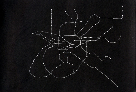 Las cartografías de Andrés Fernández no llevan a ninguna parte, pero nos llevan al mismo misterio de la existencia, el tiempo o lugar antes del nacimiento. Los atlas, la perspectiva, dibujos, y listas de palabras que componen su corpus comprenden una geografía fabulosa, el resultado inesperado de algún Big Bang. Imágenes de islas distantes como Sumatra, los escenarios personales y las experiencias se fusionan en una mitología secreta que nos lleva a través del propio canal de nacimiento, a través de la misteriosa zona de tránsito de Cundinamarca. Detrás de algunas obras parecen estar los patrones que recuerdan la estructuras de planificación urbana, la topografía de una ciudad, o un sistema de tráfico, pero los dibujos de Andrés Fernández finalmente sólo siguen los movimientos zigzagueantes de una lógica interna y una curiosidad obstinada.