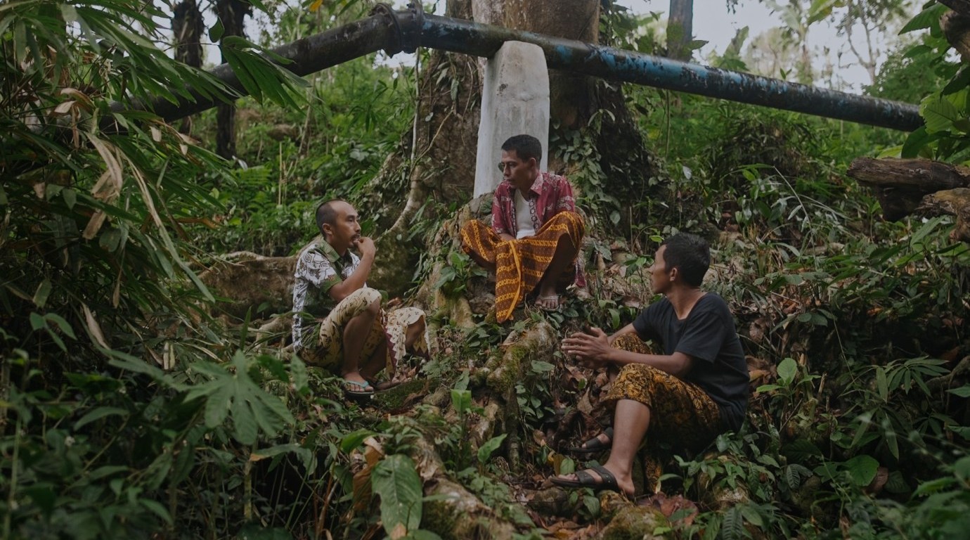La trama es sencilla, incluso arquetípica, y por eso se repite tan bien: Yono vive en el este de Java y trabaja en una mina de azufre. Un día su mujer Oliv le deja y quiere recuperarla. Entonces su madre también enferma y él quiere curarla. La trama termina igual cada vez, pero las tres versiones no son idénticas, porque cada vez se centra en uno de los tres sistemas de creencias que dan forma a la vida: el animismo, el islam y el capitalismo. Yono quiere recuperar a Oliv a través de la magia, una peregrinación y Facebook, y curar a su madre con ceremonias, oraciones y medicina moderna. La vegetación da paso a las vallas publicitarias y a los carteles de neón, las criptomonedas y los teléfonos móviles se convierten en una nueva forma de magia, y cada faceta adicional que se obtiene de la trama contribuye al retrato del mismo escenario. La montaña escupe humo de azufre, los contornos y las fronteras se desdibujan, como en la propia película, que es una nube ondulante e inclasificable de antropología, metafísica, parábolas, contemplación y colaboración, de la que emergen brevemente incluso los cineastas.